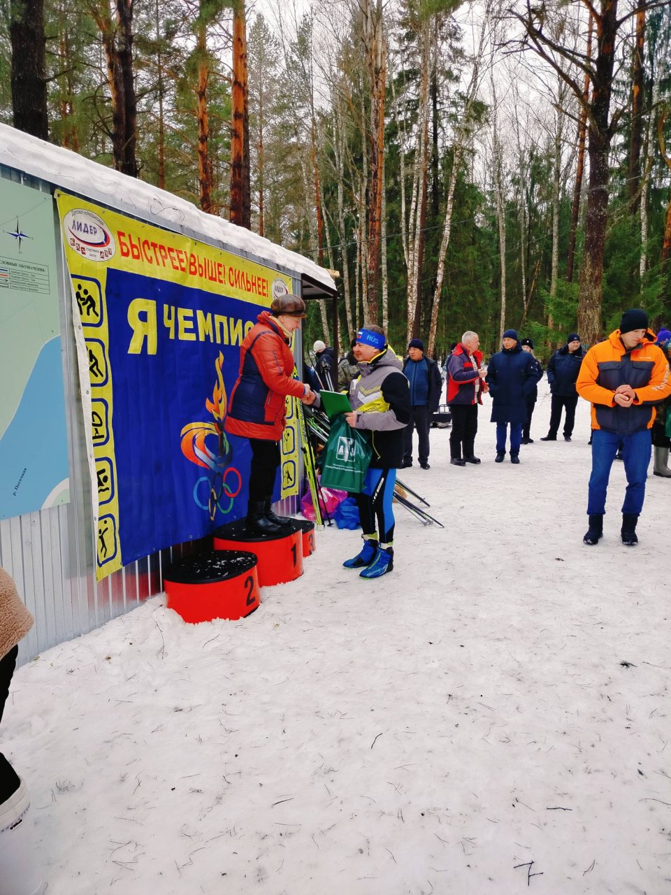 Мероприятие прошло в теплой дружеской атмосфере. Всем участникам волонтеры сделали маленькие сюрпризы: пока шло подведение итогов и награждение, они вручали изготовленные специально для участников лыжни самодельные открытки.